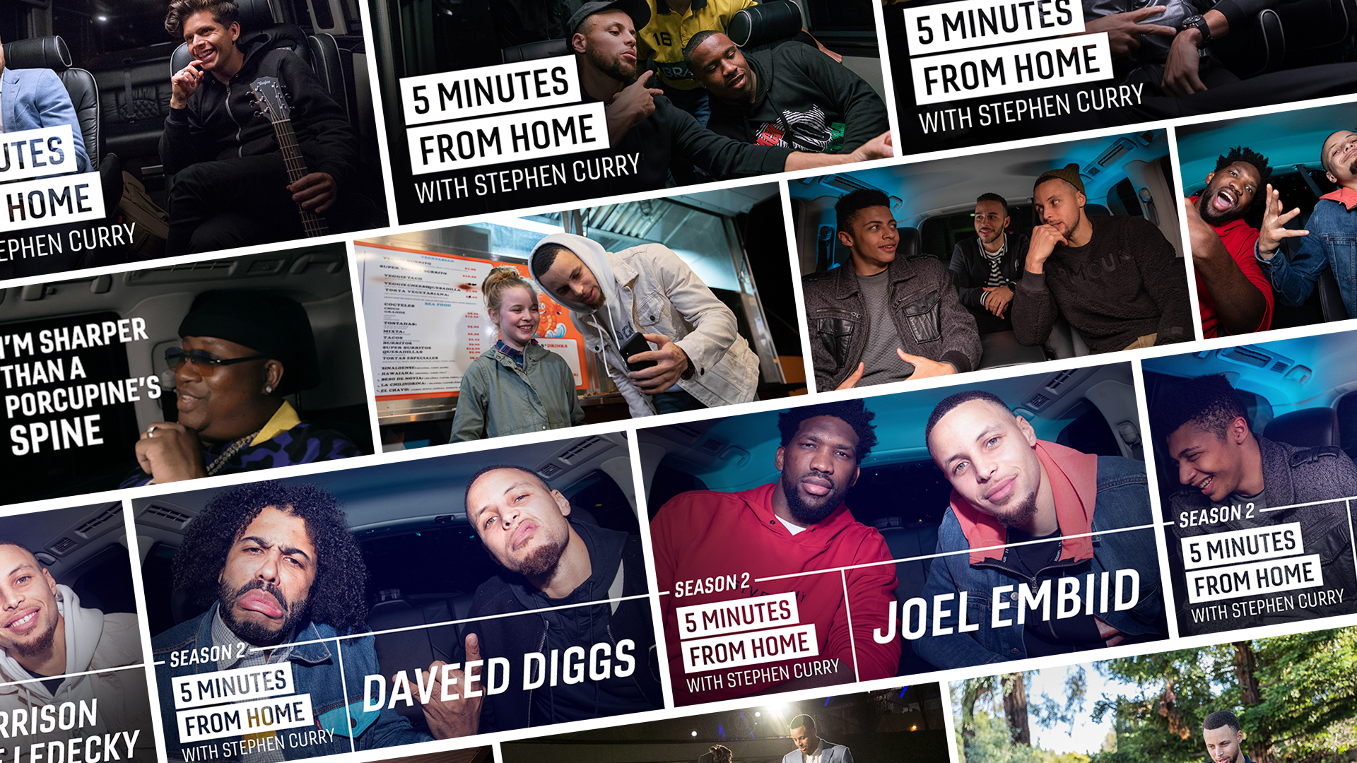 5 Minutes From Home is a candid YouTube interview series hosted by Stephen Curry with delicious food, unique guests, and real talk in the backseat of a van.